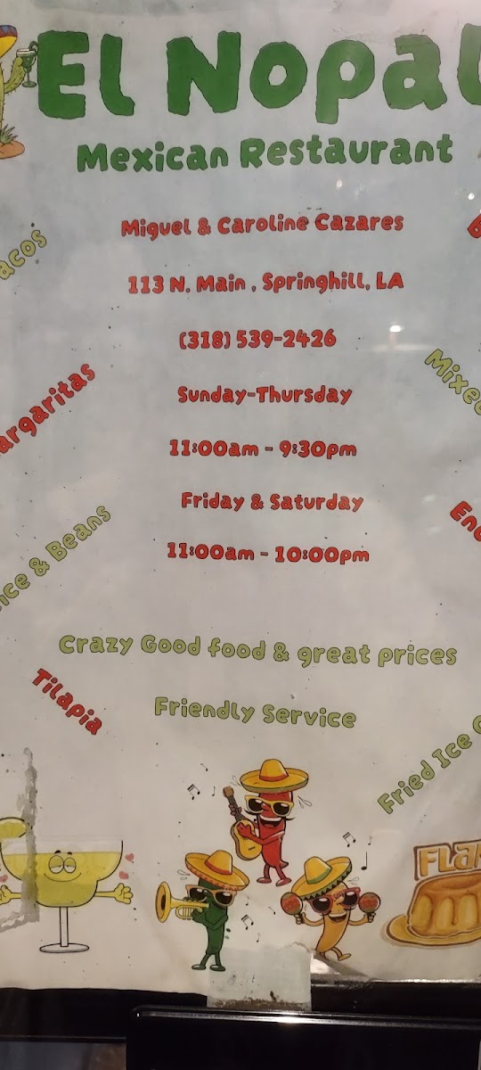 Welcome to El Nopal Mexican Restaurant & Bar, a hidden gem nestled in Springhill, Louisiana, where authentic flavors meet exceptional service. Located at 113 N Main St, El Nopal is a culinary oasis for Mexican food lovers. The menu boasts a delightful array of homemade dishes—evidence that the kitchen prioritizes quality ingredients over convenience, as highlighted by loyal customers.